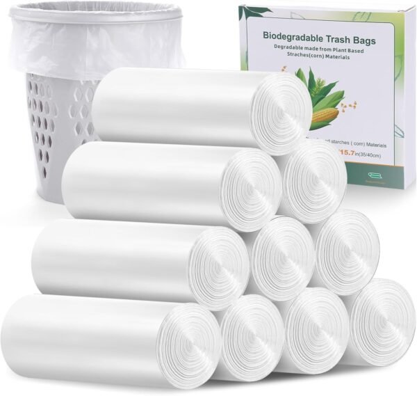 240 Counts 1.2 Gal Small Bin Bags 3-6L Biodegradable Compostable Food Waste Bags,Pedal Caddy Bin Liners for Kitchen,White Trash Bags for Bathroom Toilet Office,Clear Rubbish Liners