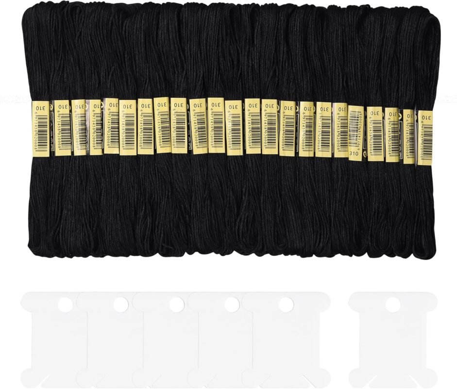 Embroidery Threads 25 Skeins Black, AUERVO Embroidery Floss, Cross Stitch Threads, Friendship Bracelet Thread,Crafts Floss Rainbow Color with 6 Embroidery Bobbins