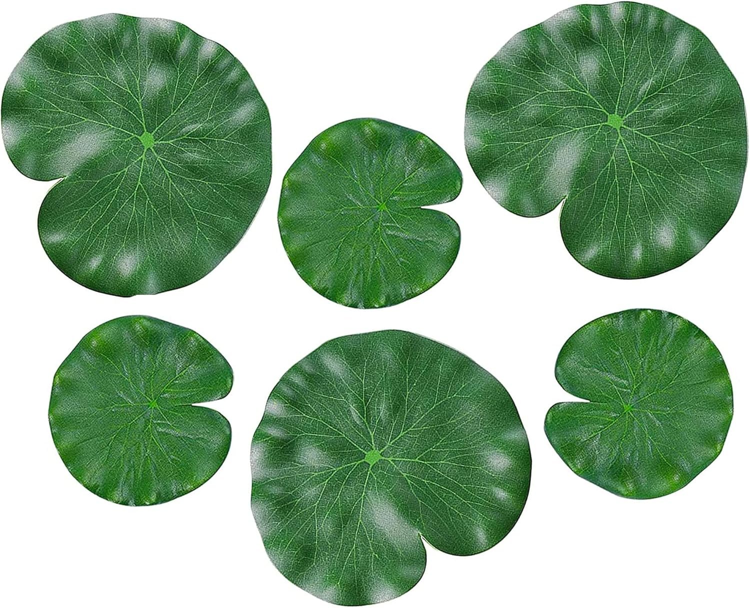 IRYNA 6Pcs Artificial Lily Pads Leaves Floating Foam Lotus Leaves Realistic Floating Lotus Leave for Home Garden Ponds Pool Landscape Decoration (10cm & 17cm)